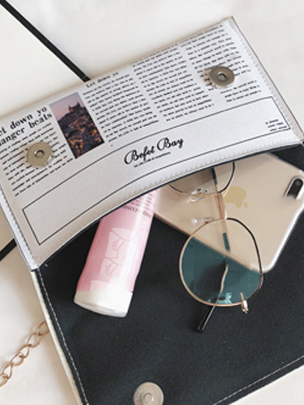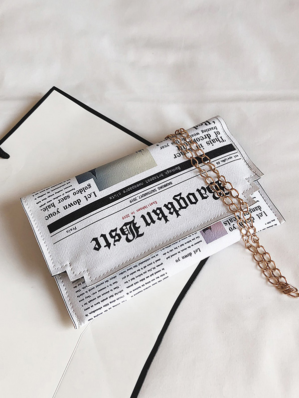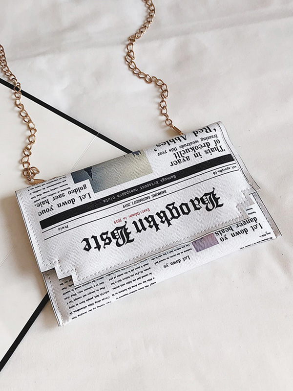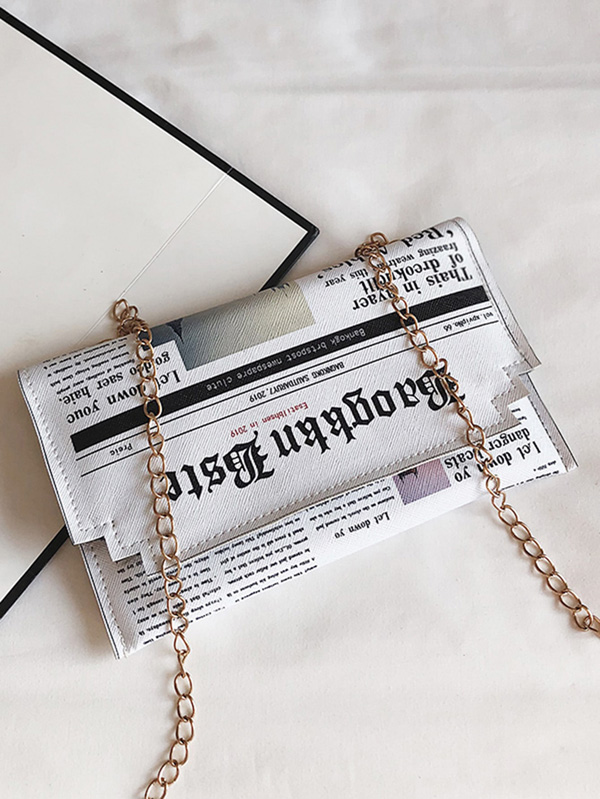 Letter Print Flap Chain Bag